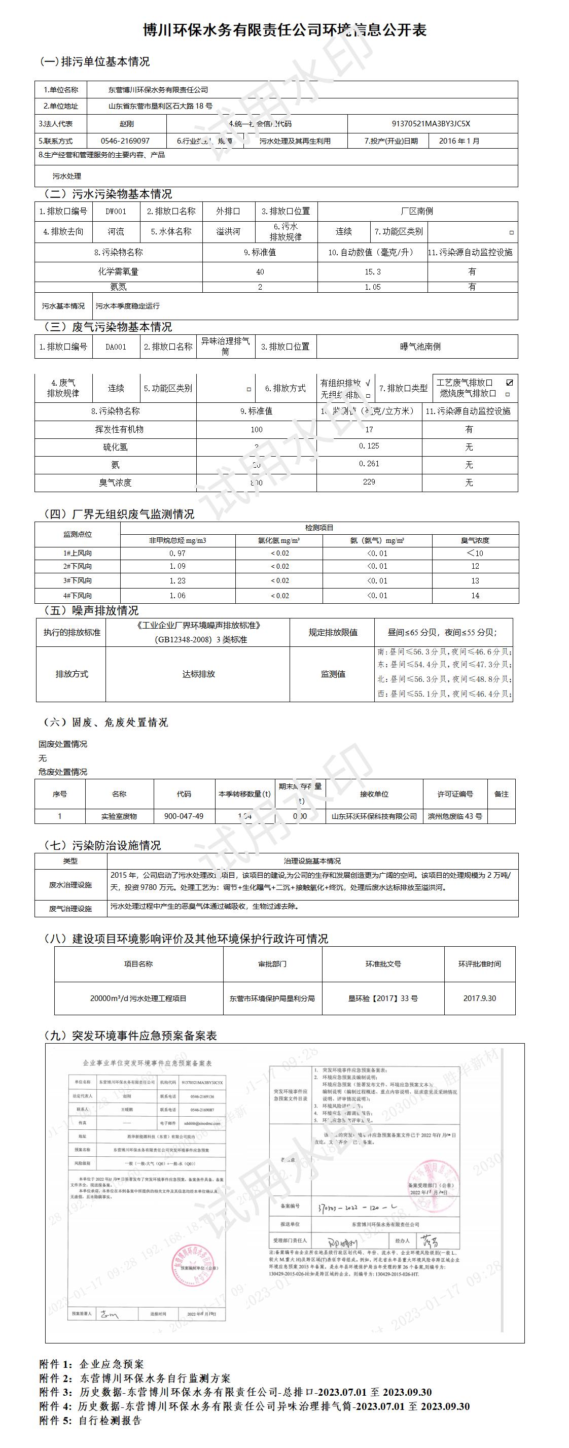 東營博川環保水務有限公司環境信息公開表(2023年第三季度)